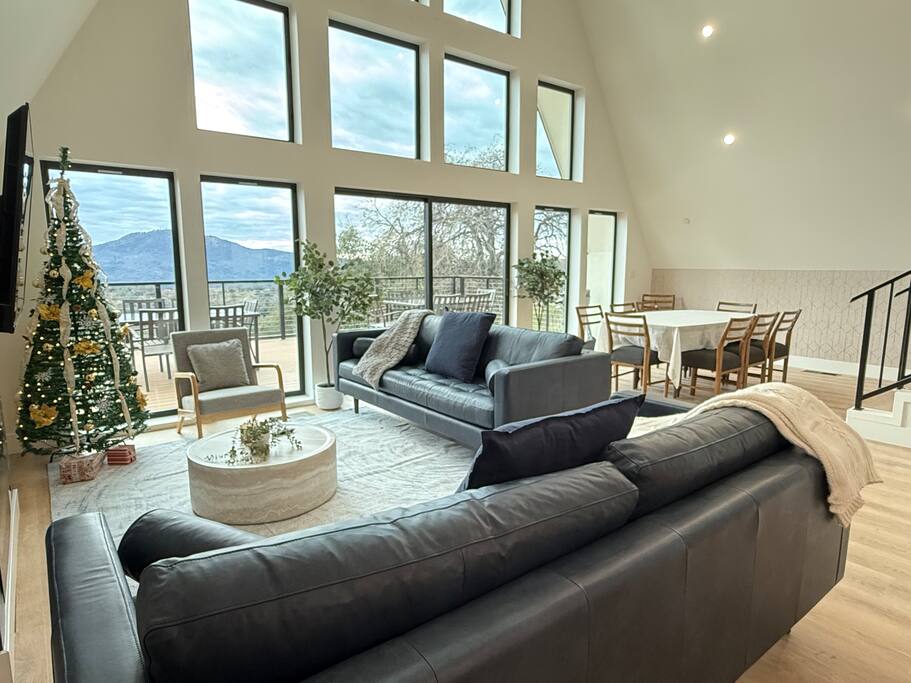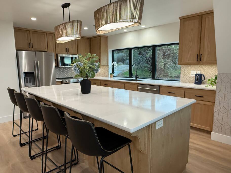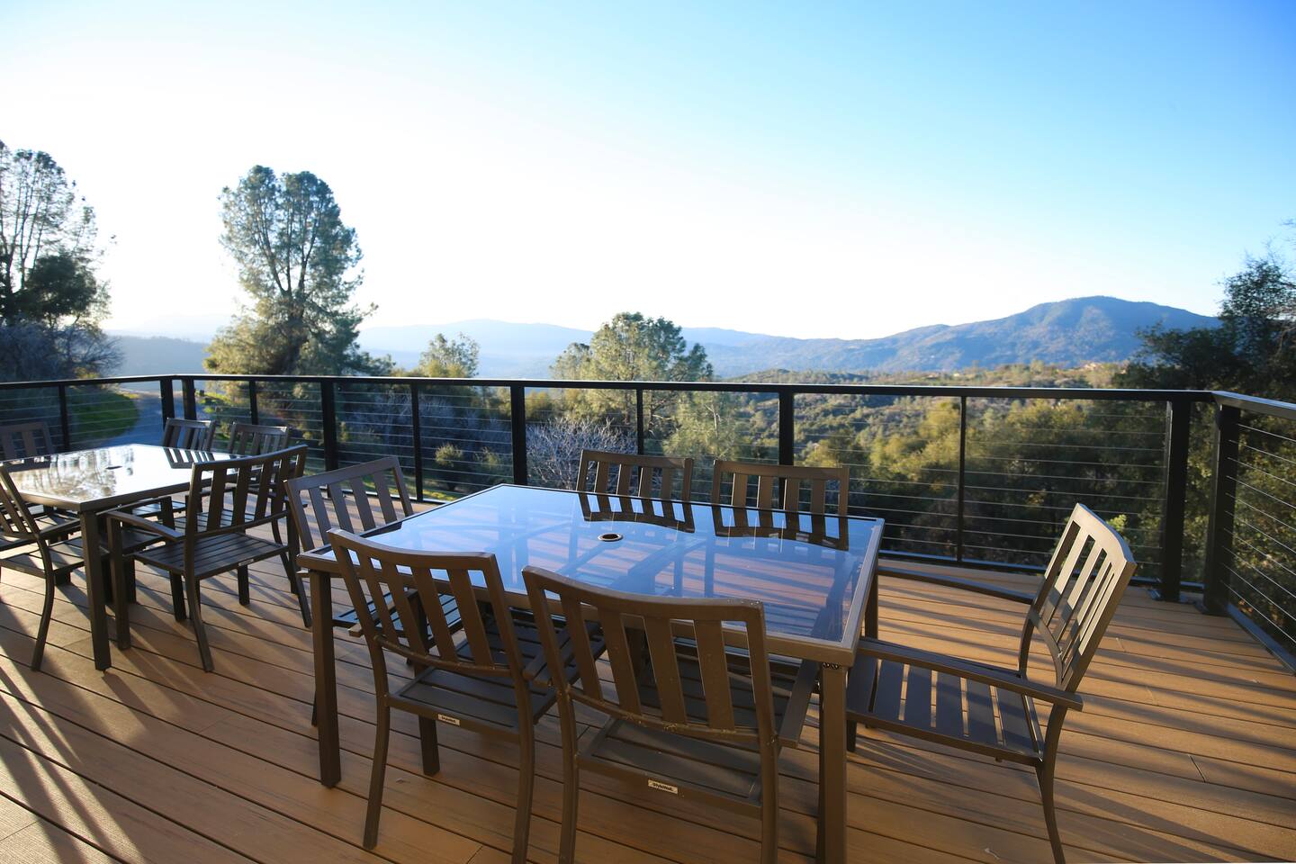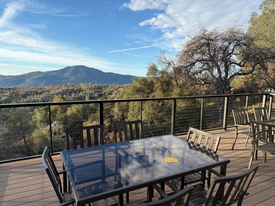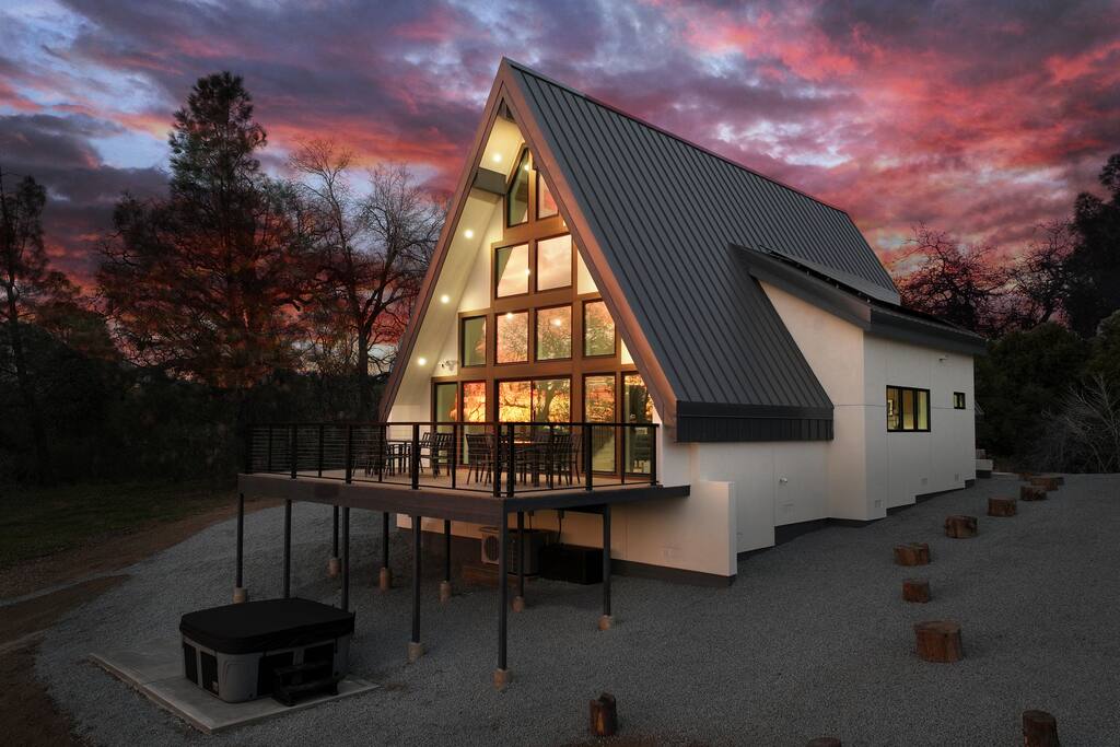 We proudly introduce Sierra Summit Oakhurst, a brand-newly constructed mountain retreat designed for meaningful time, elevated comfort, and unforgettable Yosemite adventures. Thoughtfully crafted to host up to 10 guests, this stunning 4-bedroom, 2-bath residence invites you to slow down, reconnect, and create lasting memories just minutes from one of the world’s most iconic national park. Completed in 2025, our home is set on 4.5 acres with acres along a secluded road, offering exceptional privacy and sweeping valley views framed by oaks and pines. Located approximately 20 minutes from Yosemite National Park’s South Entrance, Sierra Summit places you remarkably close to nature while surrounding you with refined design and modern convenience. The home’s striking glass-filled façade floods the interior with natural light and showcases breathtaking views across the valley below. Inside, you’ll find a beautifully curated space featuring quartz countertops, Kitchen-Aid stainless steel appliances, European-inspired wall finishes, and a clean, sophisticated aesthetic throughout. The open-concept kitchen, dining, and living areas are ideal for gathering after a day of exploration. Step outside onto the expansive deck with seating for 10, fire up the electric BBQ, and take in the quiet luxury of your private estate. Whether you’re relaxing on the property or venturing out, you’re perfectly positioned to explore Yosemite National Park, Mariposa Grove of Giant Sequoias, Bass Lake, Badger Pass Ski Area, Chukchansi Casino, and the charming town of Oakhurst—just five minutes away for dining, shopping, and local experiences. Modern Amenities & Features 4 bedrooms | 2 bathrooms | Sleeps up to 10 Central heating & air conditioning Two Roku TVs Starlink high-speed internet (up to 200+ Mbps) Whole-home backup generator for uninterrupted comfort Solar power & Tesla EV charger (bring adapters as needed) Large private deck with seating for 10 Electric BBQ On-site 3-hole frisbee golf Ample parking, including boat and trailer space During winter months, enjoy skiing at Badger Pass, located inside Yosemite National Park—making Sierra Summit a true four-season destination. You’ll have exclusive access to the entire 4.5 acres, offering tranquility, and expansive views. With over 1,200 five-star reviews across our other properties, you can book with confidence knowing every detail has been carefully considered. Optional enhancements such as in-home massage, private chef services, kayak rentals, and more are available to elevate your stay even further. We’re thrilled to welcome you to Sierra Summit Oakhurst, a place we’ve built from scratch with intention, care, and a deep love for this incredible landscape. We hope it becomes a retreat you return to year after year. Note: We also have a nearly identical home next door that can sleep an additional 10 people which can be booked separately. Please see our profile for more info on that one.