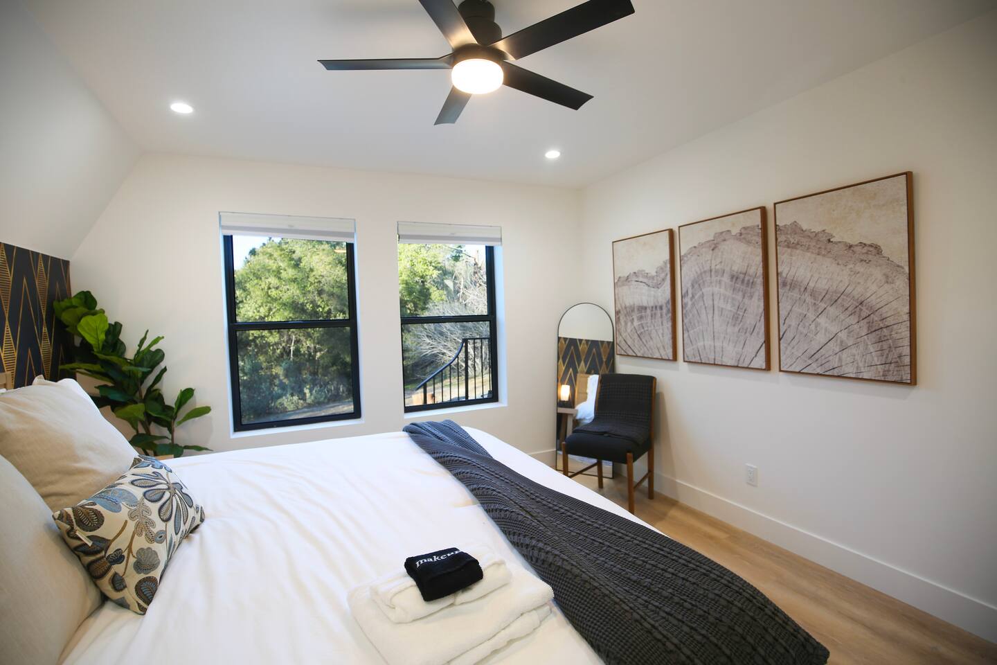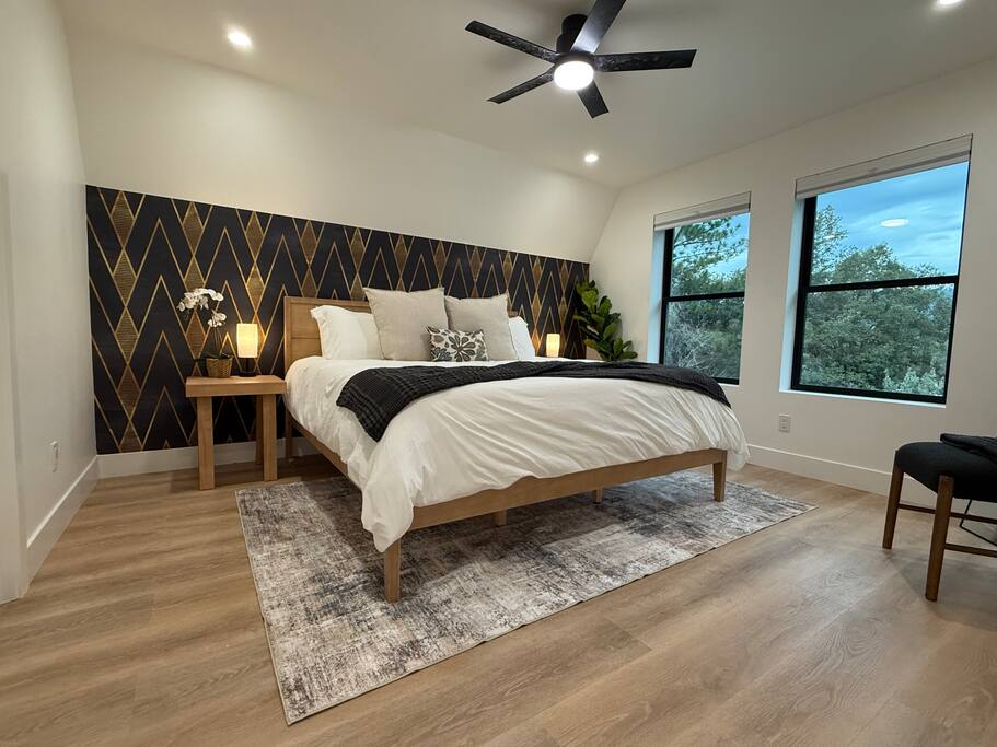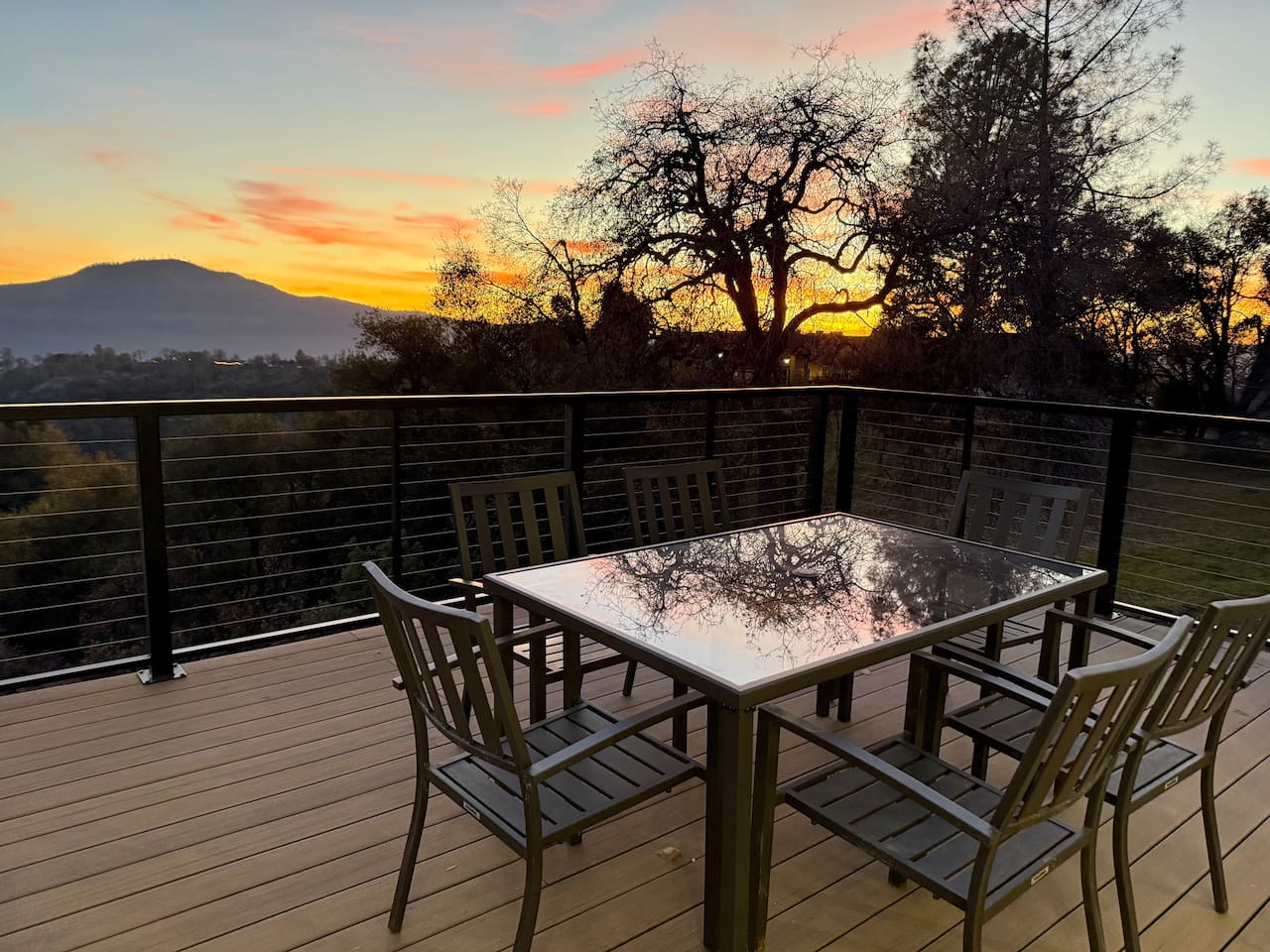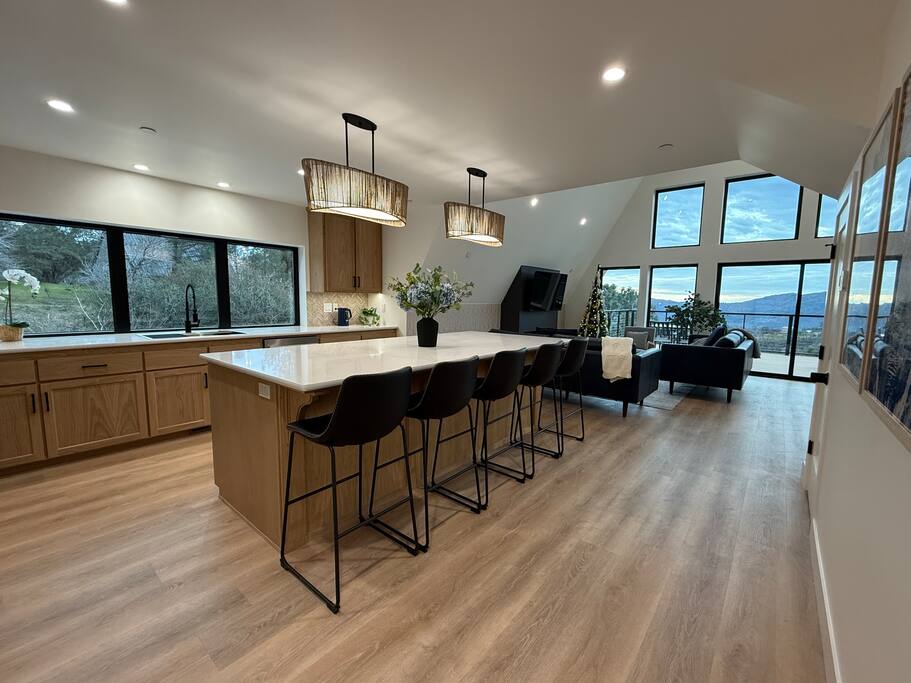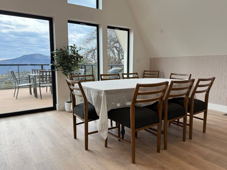 We proudly introduce Sierra Summit Oakhurst, a brand-newly constructed mountain retreat designed for meaningful time, elevated comfort, and unforgettable Yosemite adventures. Thoughtfully crafted to host up to 10 guests, this stunning 4-bedroom, 2-bath residence invites you to slow down, reconnect, and create lasting memories just minutes from one of the world’s most iconic national park. Completed in 2025, our home is set on 4.5 acres with acres along a secluded road, offering exceptional privacy and sweeping valley views framed by oaks and pines. Located approximately 20 minutes from Yosemite National Park’s South Entrance, Sierra Summit places you remarkably close to nature while surrounding you with refined design and modern convenience. The home’s striking glass-filled façade floods the interior with natural light and showcases breathtaking views across the valley below. Inside, you’ll find a beautifully curated space featuring quartz countertops, Kitchen-Aid stainless steel appliances, European-inspired wall finishes, and a clean, sophisticated aesthetic throughout. The open-concept kitchen, dining, and living areas are ideal for gathering after a day of exploration. Step outside onto the expansive deck with seating for 10, fire up the electric BBQ, and take in the quiet luxury of your private estate. Whether you’re relaxing on the property or venturing out, you’re perfectly positioned to explore Yosemite National Park, Mariposa Grove of Giant Sequoias, Bass Lake, Badger Pass Ski Area, Chukchansi Casino, and the charming town of Oakhurst—just five minutes away for dining, shopping, and local experiences. Modern Amenities & Features 4 bedrooms | 2 bathrooms | Sleeps up to 10 Central heating & air conditioning Two Roku TVs Starlink high-speed internet (up to 200+ Mbps) Whole-home backup generator for uninterrupted comfort Solar power & Tesla EV charger (bring adapters as needed) Large private deck with seating for 10 Electric BBQ On-site 3-hole frisbee golf Ample parking, including boat and trailer space During winter months, enjoy skiing at Badger Pass, located inside Yosemite National Park—making Sierra Summit a true four-season destination. You’ll have exclusive access to the entire 4.5 acres, offering tranquility, and expansive views. With over 1,200 five-star reviews across our other properties, you can book with confidence knowing every detail has been carefully considered. Optional enhancements such as in-home massage, private chef services, kayak rentals, and more are available to elevate your stay even further. We’re thrilled to welcome you to Sierra Summit Oakhurst, a place we’ve built from scratch with intention, care, and a deep love for this incredible landscape. We hope it becomes a retreat you return to year after year. Note: We also have a nearly identical home next door that can sleep an additional 10 people which can be booked separately. Please see our profile for more info on that one.
